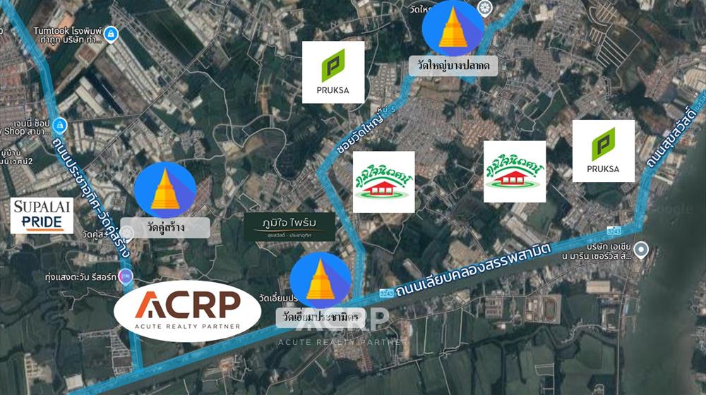 สถานที่ใกล้เคียง- สำนักงานที่ดินจังหวัดสมุทรปราการ สาขาพระสมุทรเจดีย์ 5.2 กม.- สำนักงานขนส่งสมุทรปราการ สาขาพระประแดง 5.9 กม.- สนามกีฬาเทศบาลตำบลแหลมฟ้าผ่า 5.3 กม.- โรงพยาบาลพระสมุทรเจดีย์ 6.3 กม.- บิ๊กซี ฟู้ดเพลส ประชาอุทิศ 7.3 กม.- ป้อมพระจุลจอมเกล้า 8.9 กม- โรงเรียนราชประชาสมาสัย ฝ่ายมัธยม รัชดาภิเษก ในพระบรมราชูปถัมภ์ 11.1 กม.- สะพานกาญจนาภิเษก 11.2 กม.
