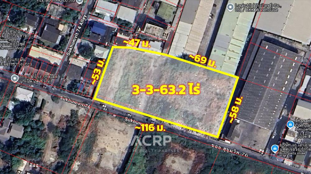 ขายที่ดินทำเลทอง ใกล้ BTS แบริ่ง – สุขุมวิท 76 (3-3-63.2 ไร่)