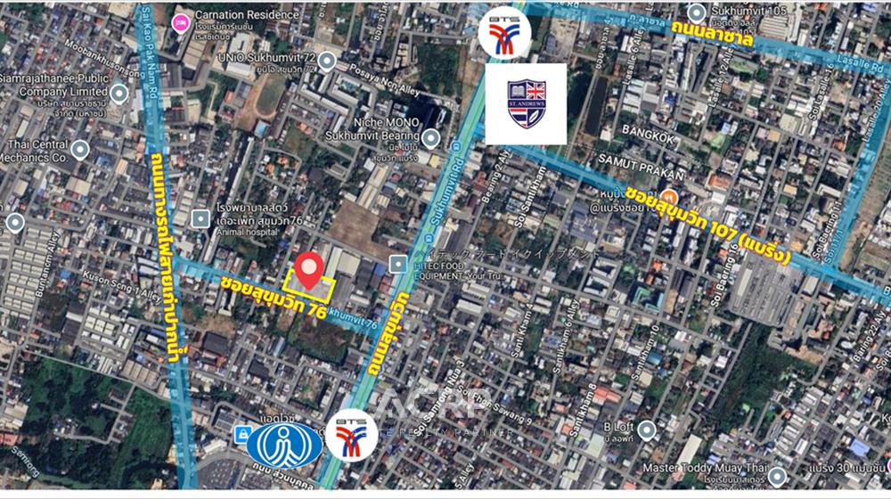 จุดเด่น• ทำเลใกล้ BTS แบริ่ง ศูนย์กลางการเดินทางสู่ใจกลางกรุงเทพฯ• ศักยภาพการพัฒนาที่ดินสูง รองรับความต้องการที่อยู่อาศัยและพาณิชยกรรมในอนาคต• พื้นที่กว้าง เหมาะสำหรับนักลงทุนรายใหญ่ และ Developer
