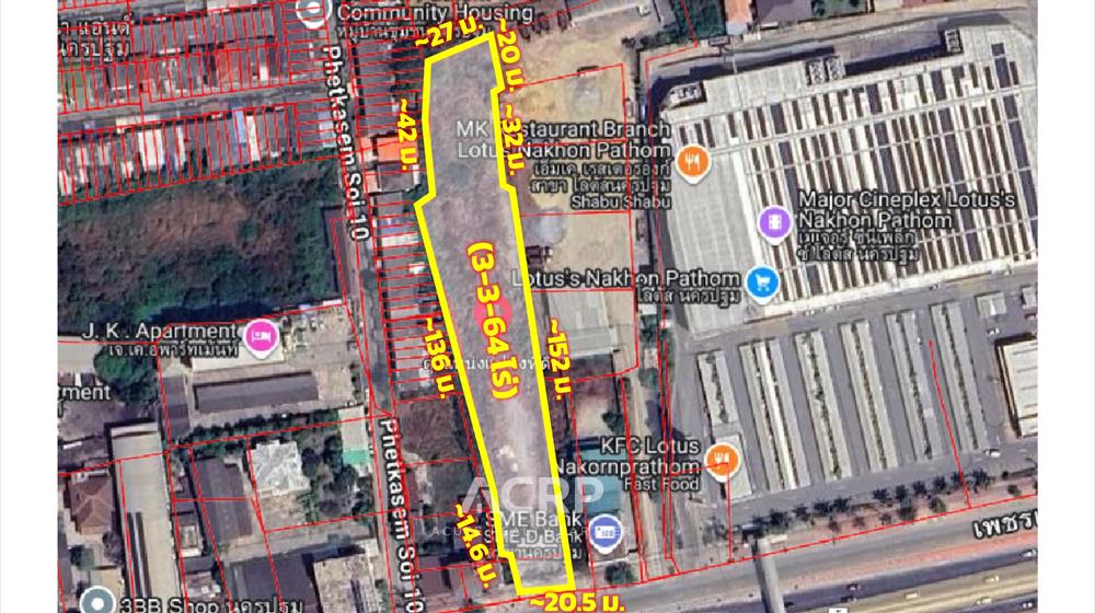 เสนอขายแปลงที่ดินศักยภาพสูง ขนาด 3-3-64 ไร่ บนถนนเพชรเกษม ทำเลตรงข้าม เซ็นทรัล นครปฐม ตำแหน่งที่ดีที่สุดแห่งหนึ่งในตัวเมืองนครปฐม โดดเด่นทั้งด้านการค้า การอยู่อาศัย และการพัฒนารูปแบบโครงการต่าง ๆ ตามศักยภาพความต้องการของตลาดในพื้นที่