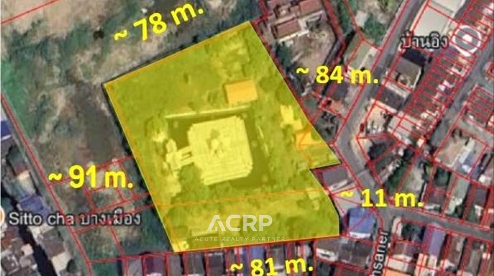 ขายที่ดิน 5-1-52.8 ไร่ ถนนเทพารักษ์ ซอยหมอเสนอ ใกล้ถนนใหญ่ เพียง 300 เมตร เหมาะทำโครงการจัดสรร
