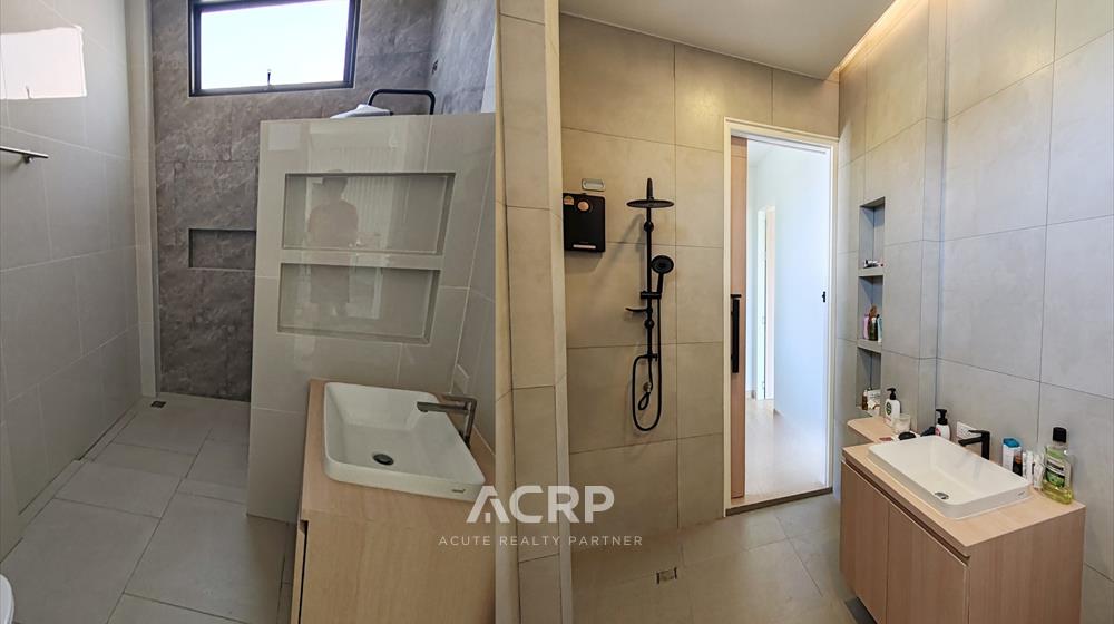 รายละเอียดบ้าน• บ้านเดี่ยว 2 ชั้น พื้นที่ใช้สอย 300 ตร.ม.• 5 ห้องนอน | 4 ห้องน้ำ | 1 ห้องครัว• จอดรถได้ 2 คัน• บ้านใหม่มาก สร้างเสร็จเพียง 1 ปีจุดเด่น• บ้านโปร่งแบบ Double Volume เพดานสูง 3.2 เมตรทั้ง 2 ชั้น• โถงชั้นบนขนาดใหญ่ เชื่อมต่อกับชั้นล่าง เหมาะทำมุมนั่งเล่น / รับแขก• ทางเข้าเป็น Private Lane เงียบสงบ เป็นส่วนตัว• ห้องน้ำโทนครีม-เทา ดีไซน์เรียบหรู