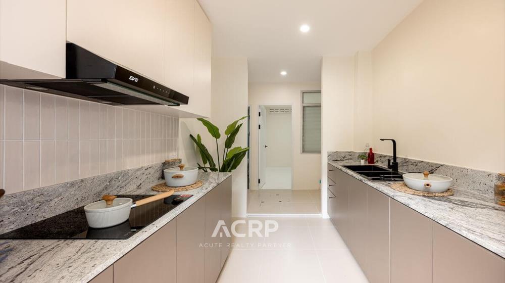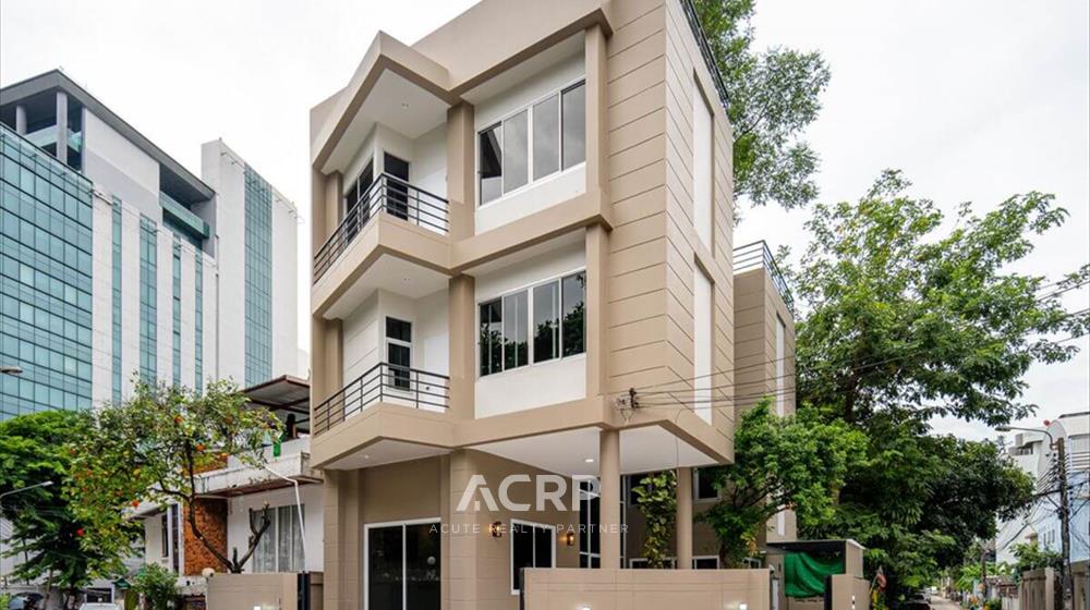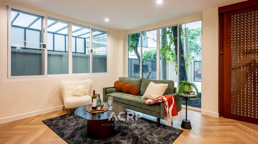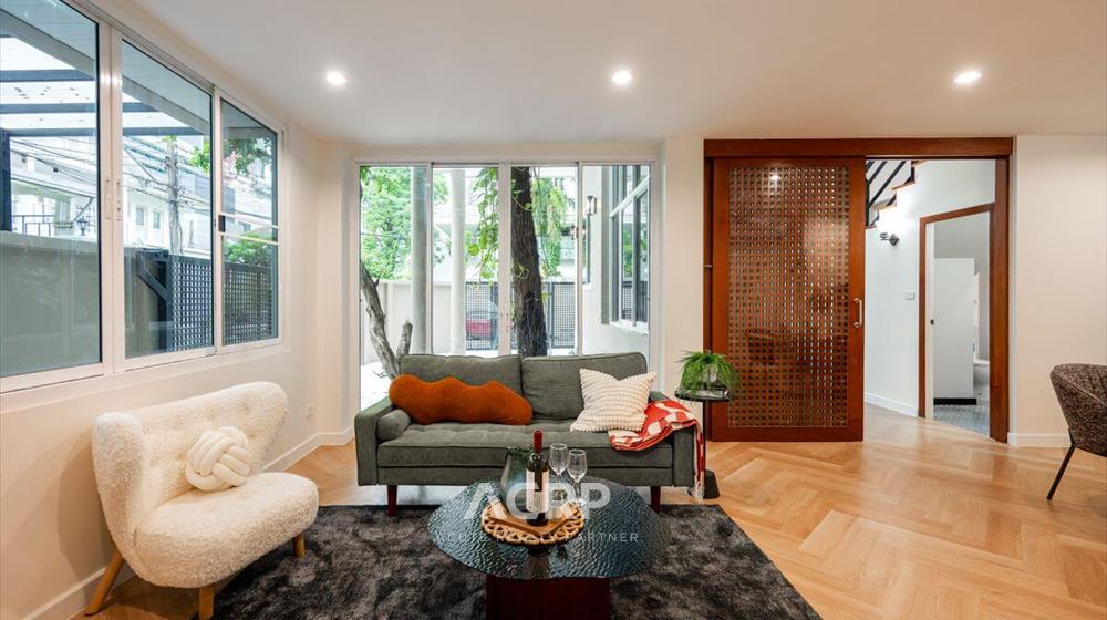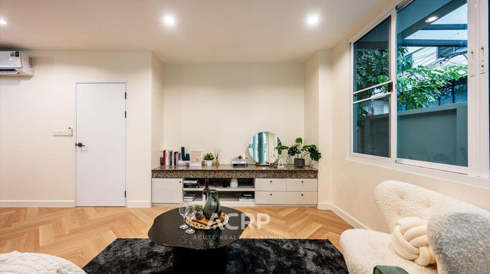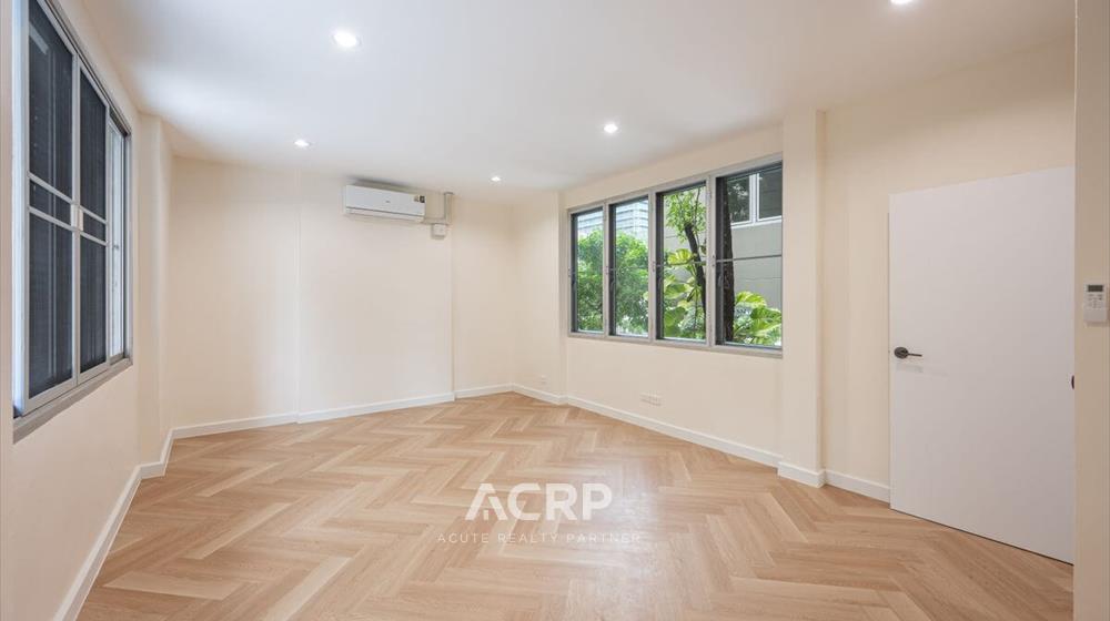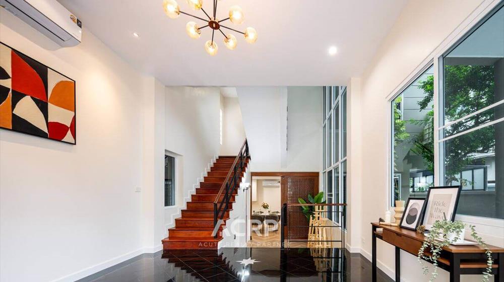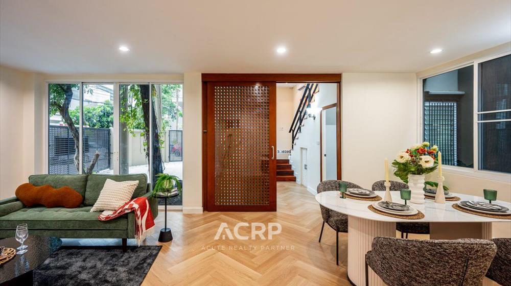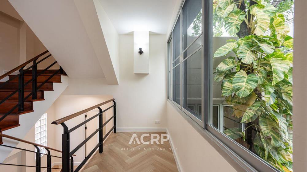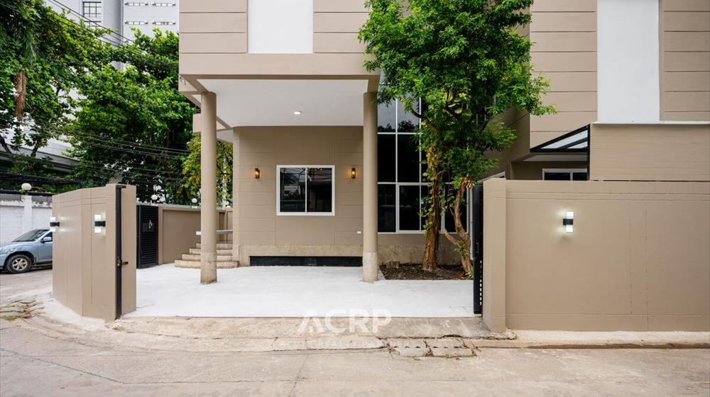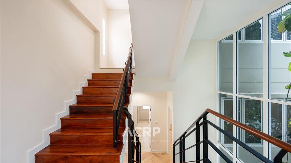 Newly renovated 3-story detached house for sale on Vibhavadi Rangsit 5, Soi 6, near MRT Chatuchak and BTS Mo Chit. Details: - 375 sq m of usable space, 51 sq wah of land area- 5 bedrooms, 4 bathrooms | 3-car parking- Modern Contemporary style upgrade from redwood tones to warm walnut- Homerun's signature herringbone pattern SPC flooring Renovation details: - Completely repainted for a bright and airy feel- Completely renovated bathrooms with new sanitary fixtures- Replaced all doors- Repaired windows and installed new screens- Replaced durable, easy-care SPC flooring- Ceiling, fence, and wall repairs to give the house a fresh look- Completely repainted stairs, ready for use- Electrical system inspection, new plugs and switches, and rewiring- Plumbing system inspection, water leak repairs, and complete solutions for immediate move-in