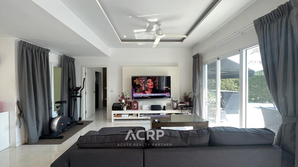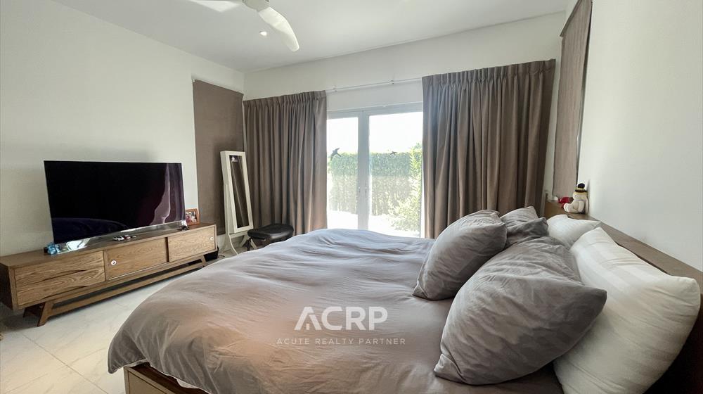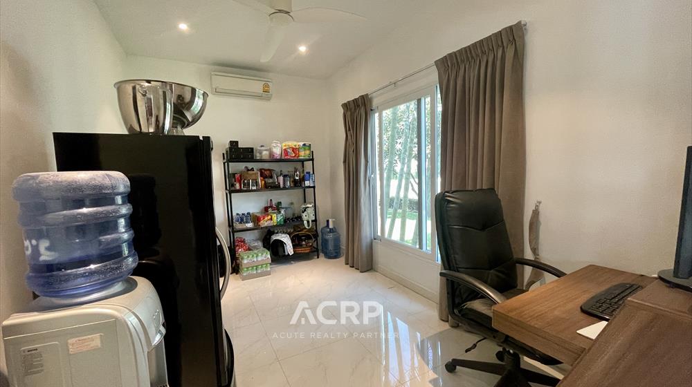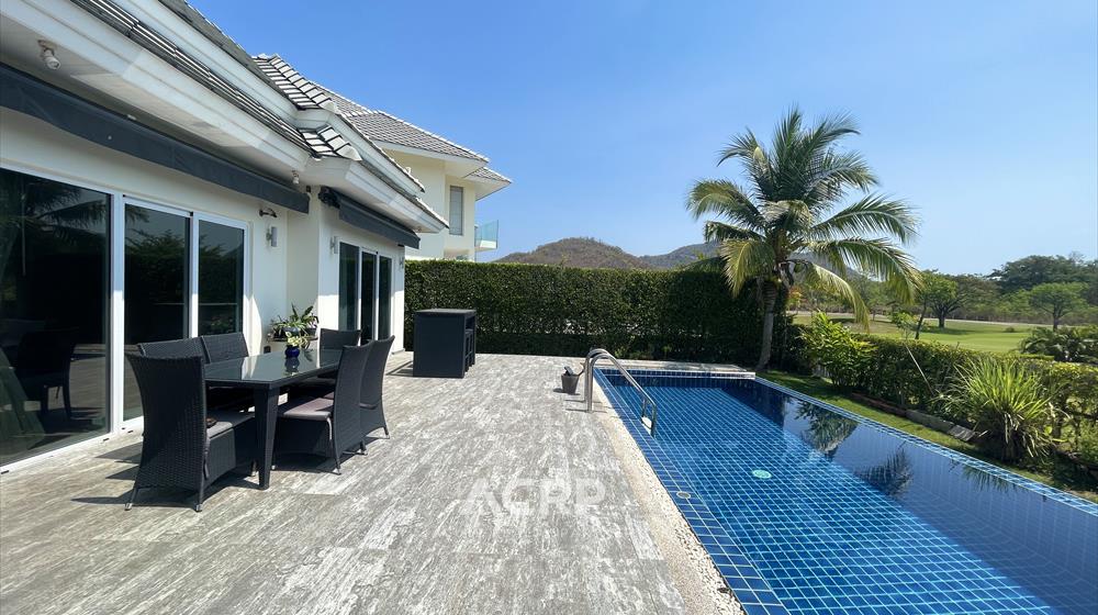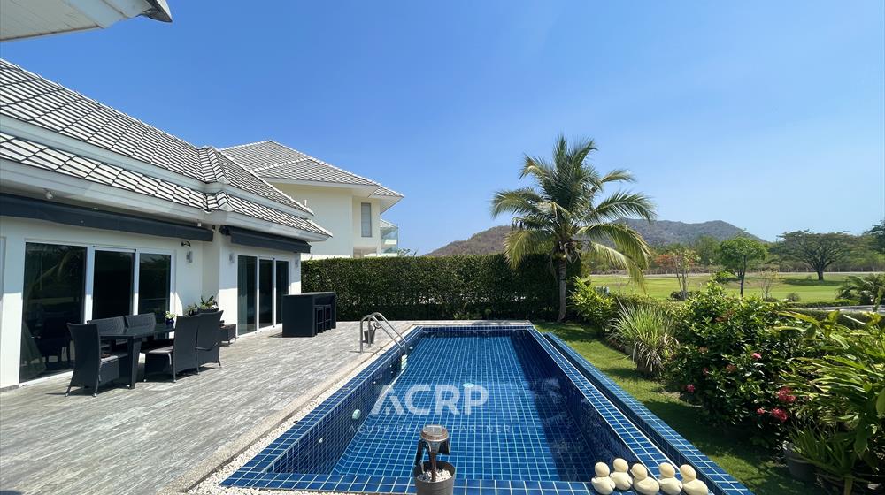 The Ultimate luxury living experience at the prestigious Black Mountain Hua Hin golf course. Featuring 3 spacious bedrooms and 3 modern bathrooms, this villa has everything you need to live in comfort and style. One of the bedrooms has been converted into an office space. The villa's highlight is undoubtedly the private pool, perfect for a refreshing dip on a hot day or simply lounging in the sun. Enjoy breathtaking views of the surrounding landscape while you relax in the comfort of your own backyard. With high-end finishes and attention to detail throughout, this villa is the epitome of luxury living. The Black Mountain Hua Hin golf course offers world-class amenities and is renowned for its beauty and challenging holes. Don't miss out on this incredible opportunity to own a piece of paradise in one of Thailand's most desirable locations. Contact us today to schedule a viewing and see for yourself what this villa has to offer.