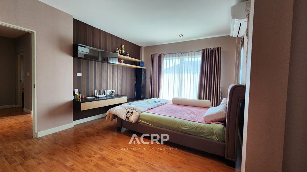 - Land size: 62 square wah- Usable area: 280 square meters- House type: 4 bedrooms, 4 bathrooms, 1 office- Side area extended to add an extra bedroom, with proper piling.- Separate maid's room for added privacy.- Front of the house has a completed carport with roof and tiled flooring.