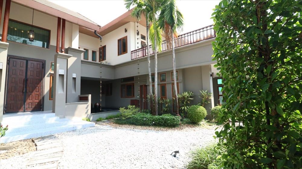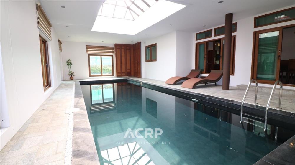 This luxury single-detached pool villa is located in Pran Village, a high-potential area near Chiang Mai International Airport. It stands out with its high-end community, peaceful surroundings, and private atmosphere. The property sits on a land plot of 219 sq.wah, with a total usable area of 789 sq.m. (excluding the terrace). Designed in a Modern Luxury style with complete functionality, the residence features 4 bedrooms and 7 bathrooms, along with maid’s quarters accommodating up to 3 staff members. The layout includes an upstairs living room, a downstairs green room, a fully fitted Western kitchen separated from the Thai kitchen, a storage room, and private parking for 4 cars. The interior highlights an indoor saltwater swimming pool with a covered roof for year-round use, a full-house ducted air-conditioning system, a decorative fish pond that enhances the serene ambiance, and a 360-degree open rooftop terrace offering panoramic views of Wat Phra That Doi Suthep Ratchaworawihan and Wat Phra That Doi Kham. The property is a resale home in condition comparable to a brand-new house, meticulously maintained by the owner and ready for immediate move-in. The project offers complete facilities, including a swimming pool, jacuzzi, fitness center, clubhouse, sauna, and 24-hour security system. The location is surrounded by key amenities, such as: > Mae Hia Fresh Market – 1 km > Ambassador Bilingual Academy – 1.3 km > Royal Park Rajapruek (World Horticultural Expo) – 2.4 km > Chiang Mai Night Safari – 2.8 km > Makro Hang Dong – 3.3 km > Wat Phra That Doi Kham – 3.8 km > Lotus’s Hang Dong – 5.8 km > Central Chiang Mai Airport – 6.2 km > Panyaden International School – 8.1 km > Chiang Mai International Airport – 8.2 km > Kad Farang Village Hang Dong – 8.4 km > Chiang Mai Ram Hospital – 8.8 km