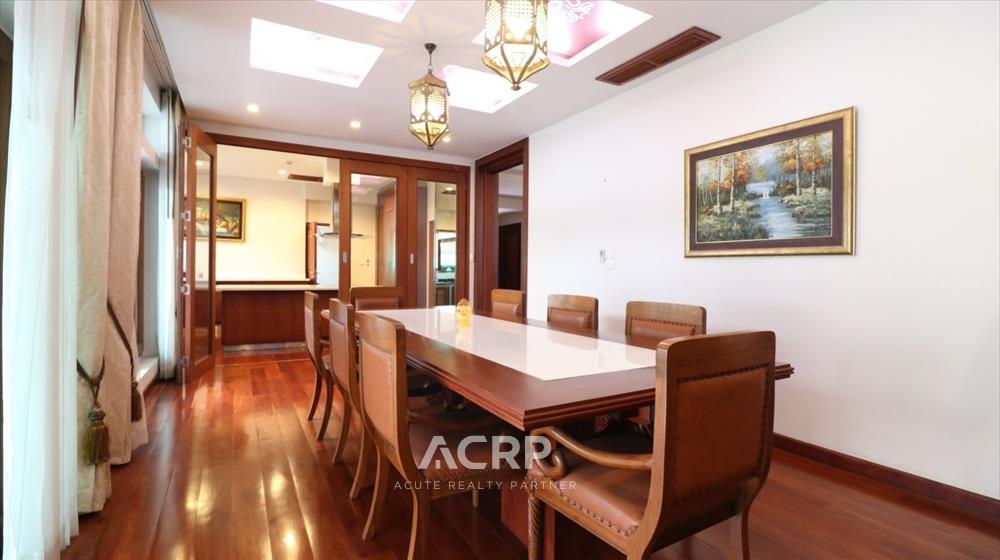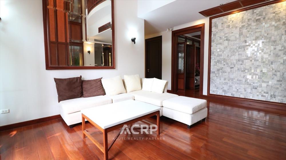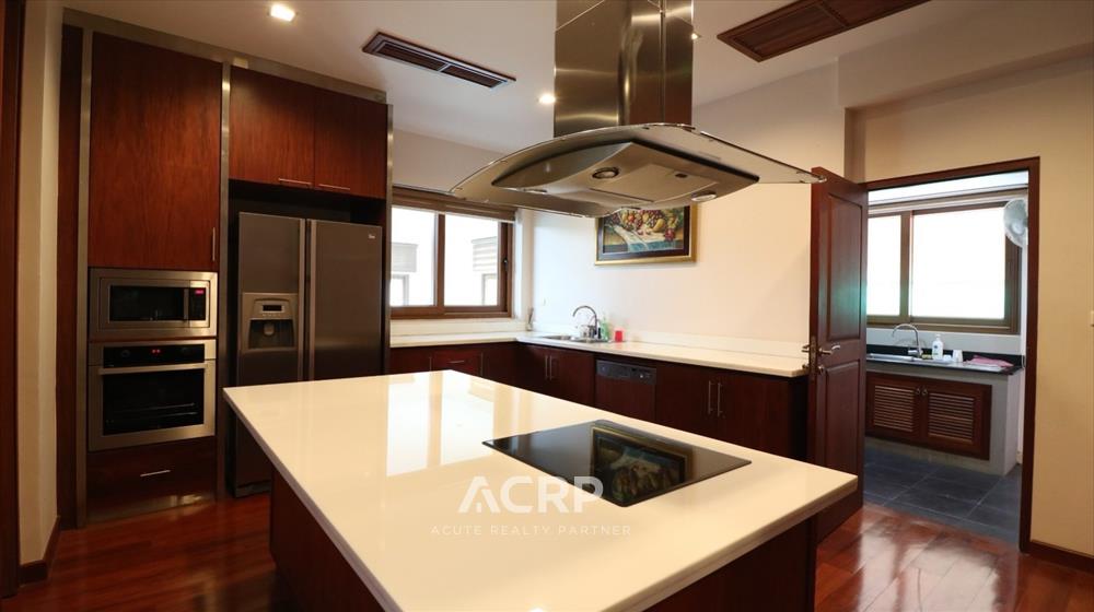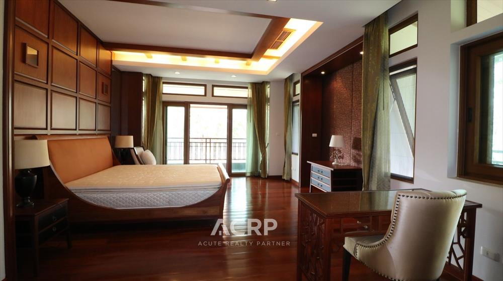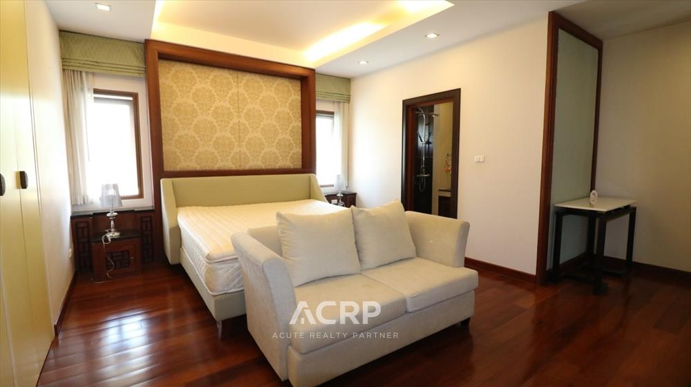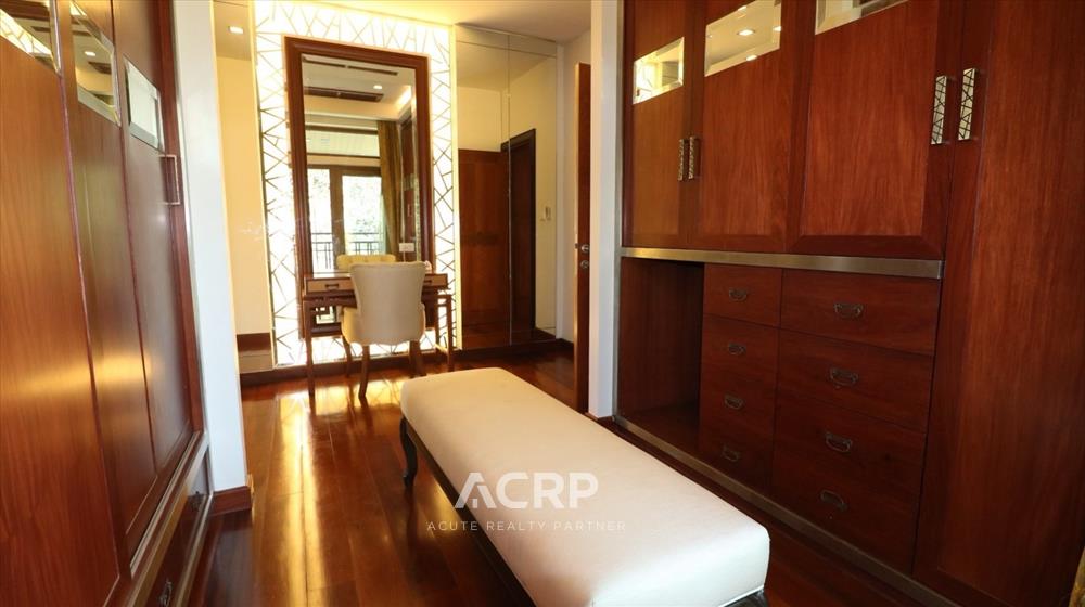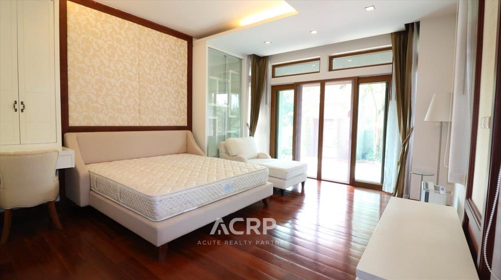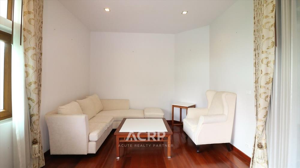 Designed in a Modern Luxury style with complete functionality, the residence features 4 bedrooms and 7 bathrooms, along with maid’s quarters accommodating up to 3 staff members. The layout includes an upstairs living room, a downstairs green room, a fully fitted Western kitchen separated from the Thai kitchen, a storage room, and private parking for 4 cars.