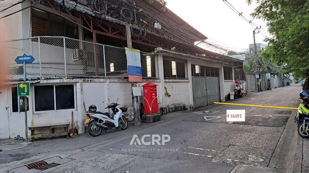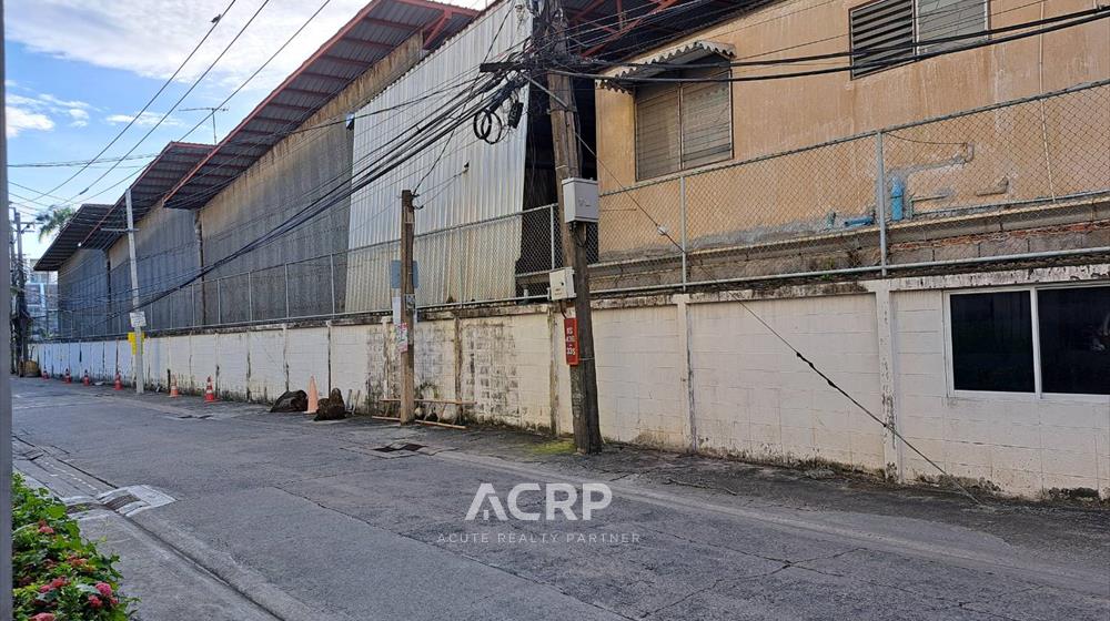 Corner plot of land with warehouse for sale, with approximately 2,000 sq m of usable space. Located in a prime location with road access on two sides, the front faces Yen Akat 2 Road, approximately 29 meters wide, and the side faces Prasat Suk Road, approximately 69 meters wide. Conveniently accessible via multiple routes, it is only 1.6 kilometers from MRT Lumpini Station. Located in a brown urban planning zone, it supports high-rise construction and has high development potential. Ideal for condominiums, home offices, townhomes, or city-center homes.