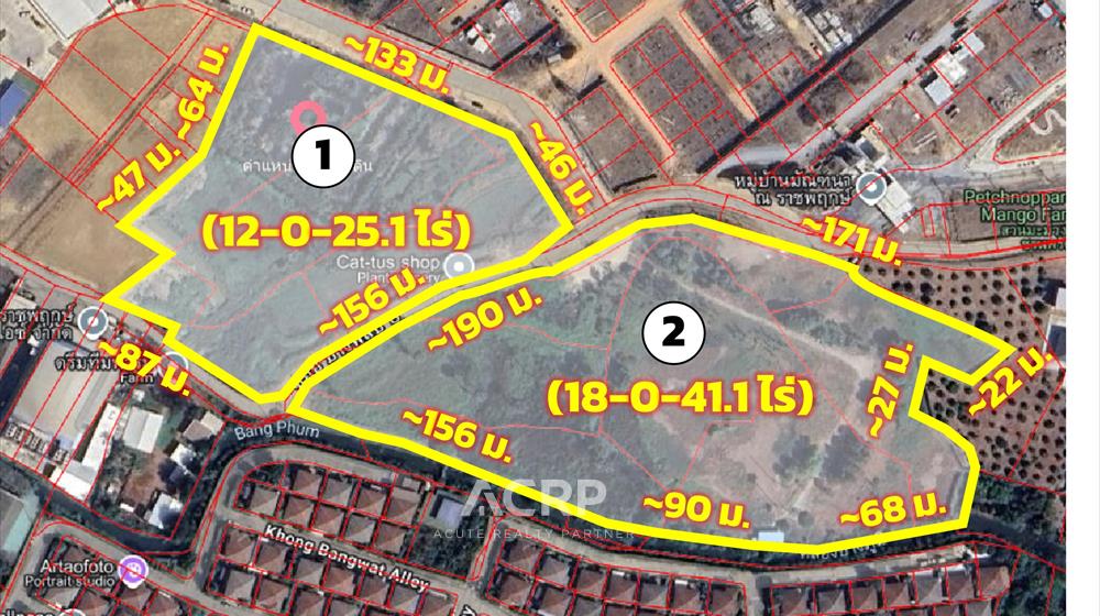 Prime Land for Sale Behind Robinson Ratchaphruek – Strategic Investment Location A rare opportunity to acquire high-potential land on Ratchaphruek Road, Bangplub Subdistrict, Pak Kret District, Nonthaburi. Located in a rapidly developing area surrounded by upscale housing projects, shopping malls, and all modern conveniences — ideal for residential or mixed-use development. Property Details- 12 Rai 0 Ngan 25.1 Sq.wah- Price: THB 256 million (Approx. 53,000 THB/Sq.wah)- Land zoning: Yellow Zone (Low-density residential – Y.3)- GPS Coordinates: 13.932046, 100.458935 Location Highlights- Behind Robinson Ratchaphruek, easily accessible from the main road- Close to Chaiyaphruek, Rattanathibet, and Si Rat Expressway- Surrounded by premium housing projects (Land & Houses, Sansiri, Areeya, etc.)- Ideal for Luxury Housing Estate, Low-rise Residential Project, or Mixed-use Development- Fast-growing suburban area with high future appreciation potential Ideal For- Developers seeking premium land for residential projects- Long-term investors looking for a secure asset in a growth corridor- Builders planning mixed-use or commercial projects in Nonthaburi Contact Our Real Estate SpecialistTel: +66 (0)64-942-3555Line ID: @acuterealtypartnerWebsite: www.acr-partner.com