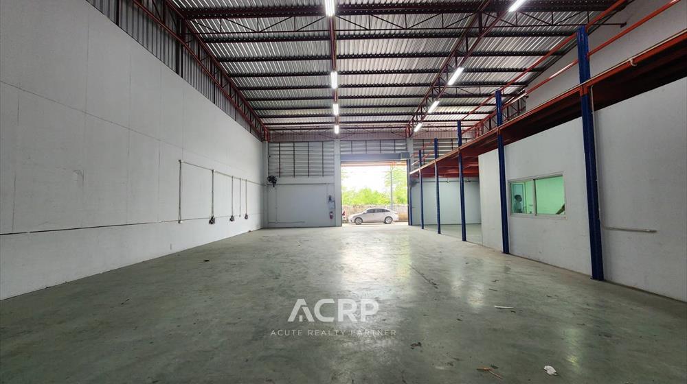 Warehouse for rent in Lat Krabang, Thap Yao, on a main road near Suvarnabhumi Airport • On a main road, parallel to the motorway• Near Suvarnabhumi Airport and the Lat Krabang Airport Rail Link• Easy access for large trucks and 10-wheel trucks• Connects to the motorway to Chonburi and the expressway Area Details • Warehouse + office space: 300 sq.m. + 100 sq.m. mezzanine• Total usable area: 400 sq.m.• Two offices with two air conditioners• Lease Terms: 2 months security deposit + 1 month advance rent Facilities: • Sturdy concrete floors, able to withstand heavy use• CCTV coverage both inside and outside the warehouse• Day and night security guards• Secure warehouse doors• Good location near the expressway and airport Lease Terms: - Minimum 3-year contract- 2 months security deposit- 1 month advance rent